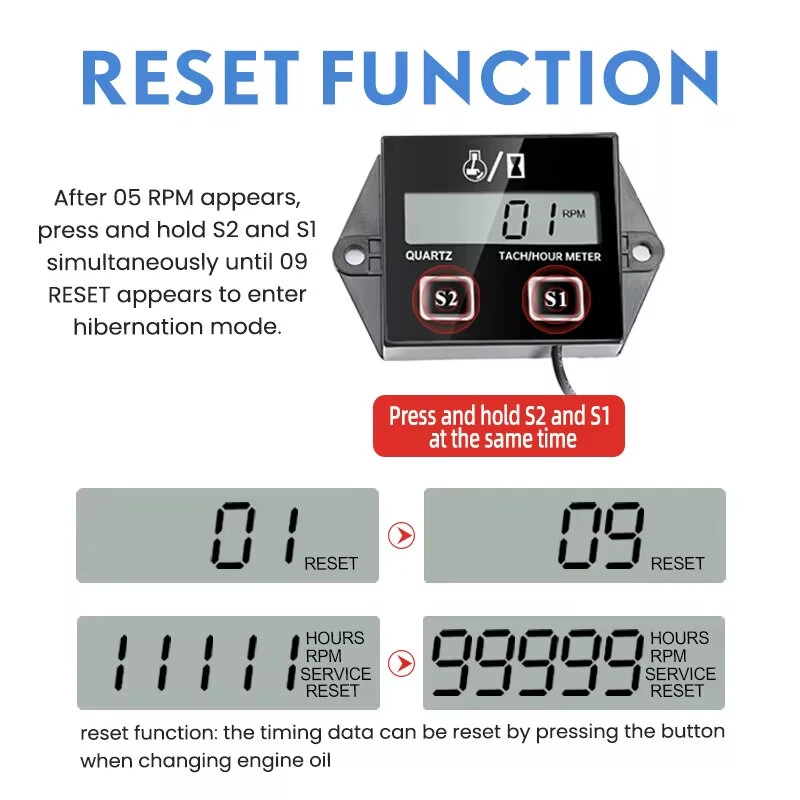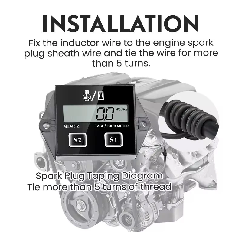 Digital Tachometer Engine Tach Hour Meter Tachometer Gauge Engine RPM LCD Display For Car Motorcycle Stroke Engine Boat ATV Motocycle