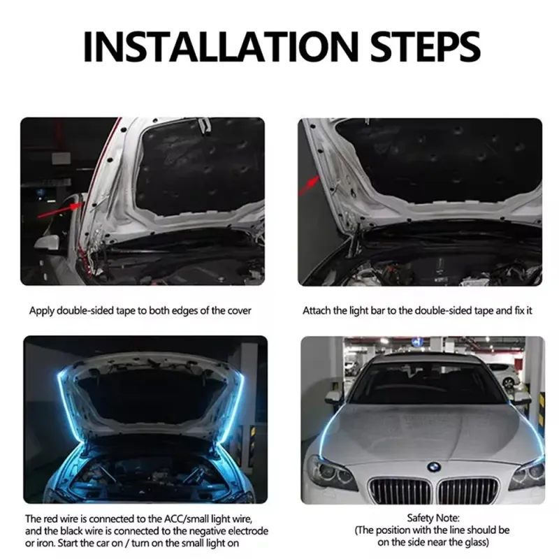 1.8m Daytime Running Lights LED Decorative Strip Car Hood Decorative Light Strip for Grill Hood Guiding Light Atmosphere Flowing Light