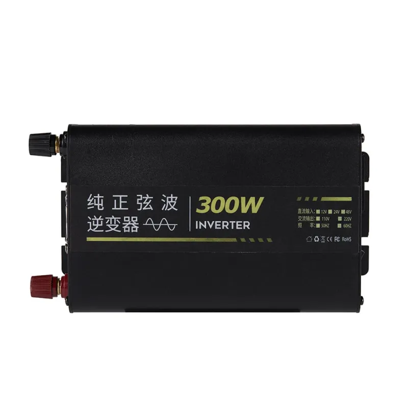 300W Pure Sine Wave Power Inverter 12V 24V to 220V AC Aluminum Alloy Case with Cooling Fan Remote Control High Efficiency 90% for Car RV Solar Overload Short Circuit Protection