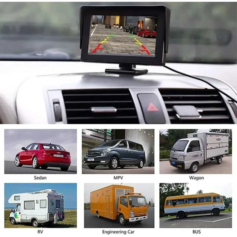 4.3inch Car Rear View License Plate Backup Camera with Monitor Screen for Vehicle Van Night Vision Reverse HD Parking System