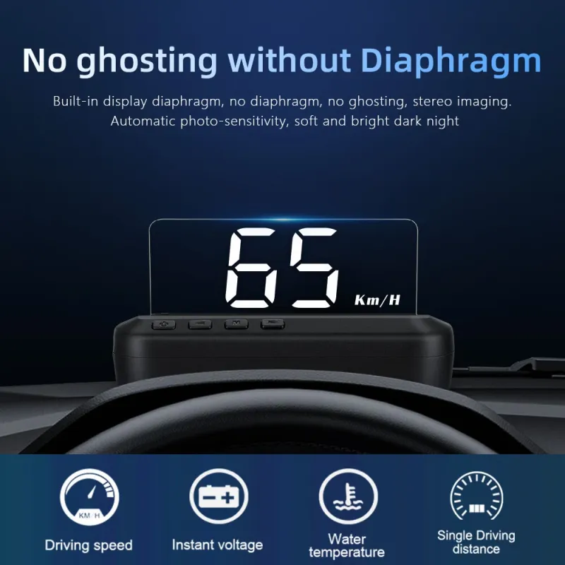 C100 Car OBD HD Speed Projector HUD Head-up Display Auto Speedometer KMHMPH Compatible with Most Cars