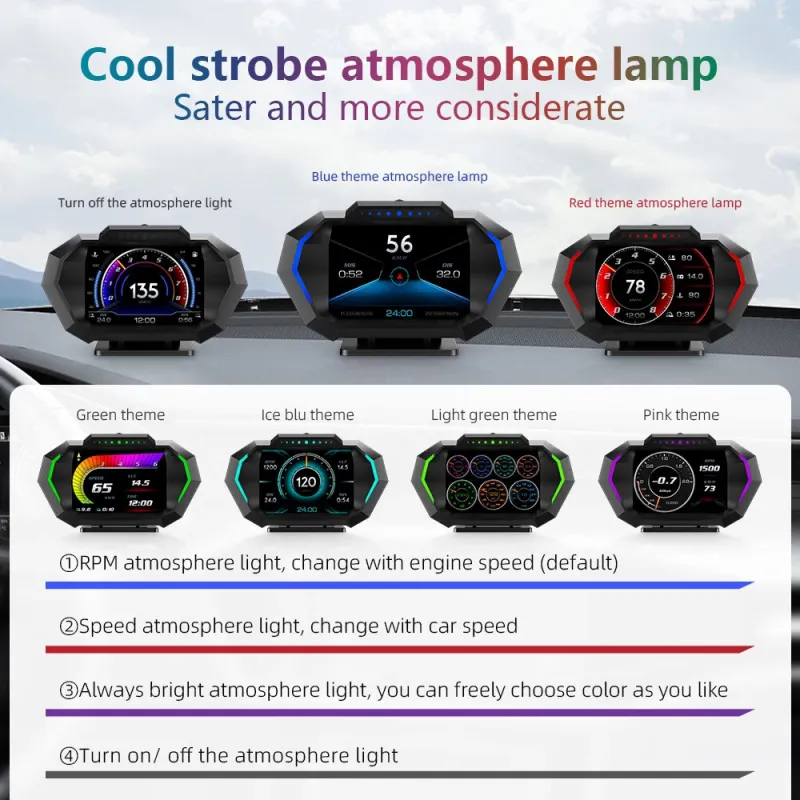 Car Head Up Display OBD+GPS Speedometer with 5 Alarm Functions Tachometer Water Temp Fuel Consumption Slope Meter