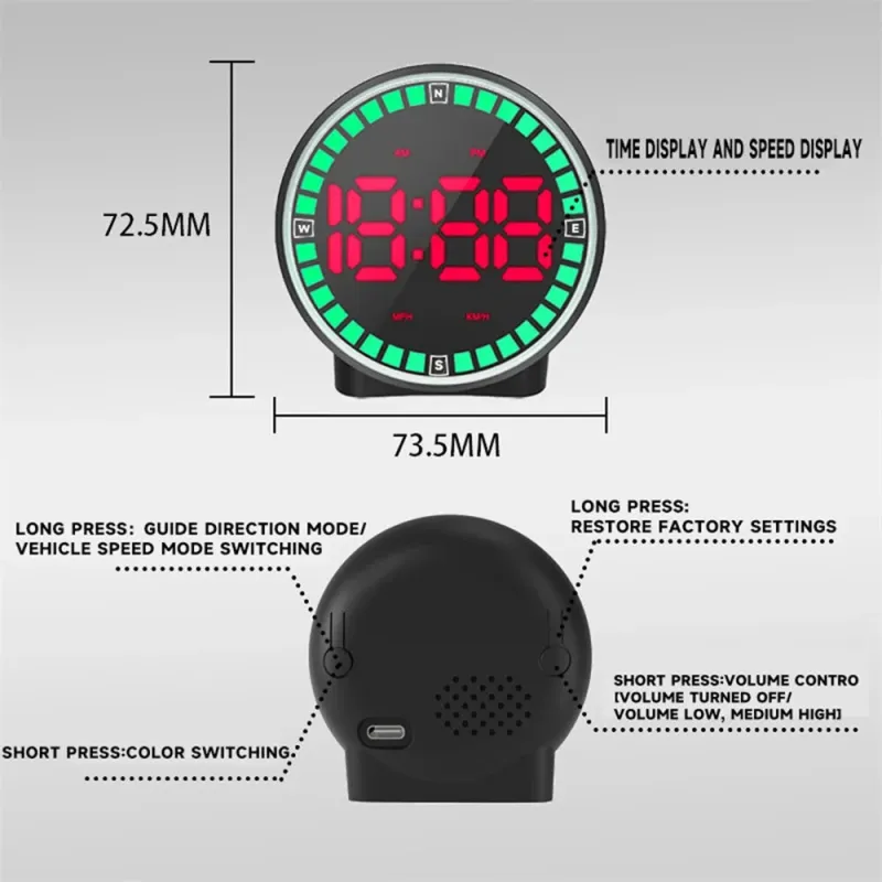 Car Speedometer Head-Up Display 7 Color Lights GPS Dashboard Monitor Overspeed Warning Large Fonts Plug and Play Universal