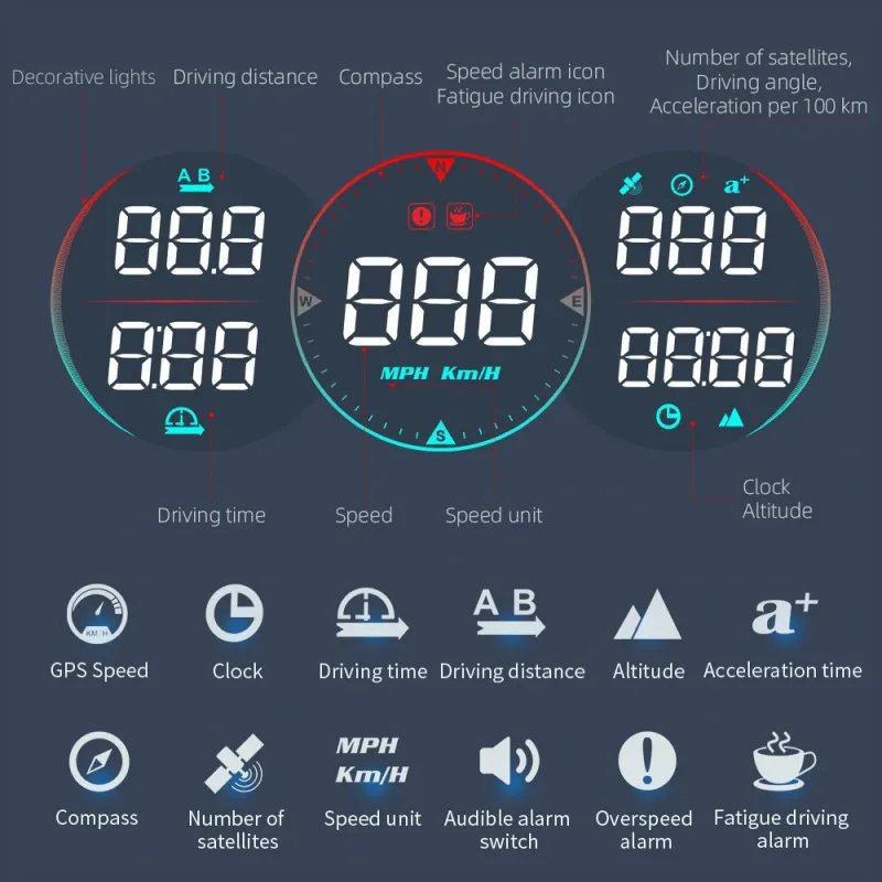 G17 Car Hud Head-Up Display Car Universal Beidou Speed Measurement Time Speed Alarm Head-Up Device