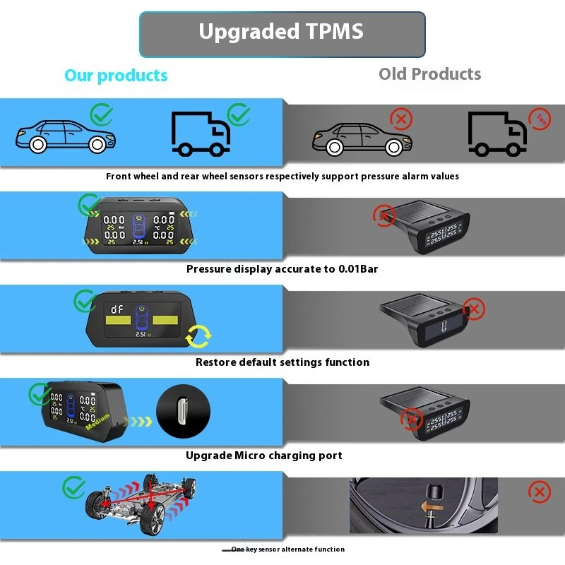Solar Powered Tire Pressure Monitoring System Car TPMS With 4 External Sensors 6 Alarm Functions Real-Time Display Of Pressure And Temperature