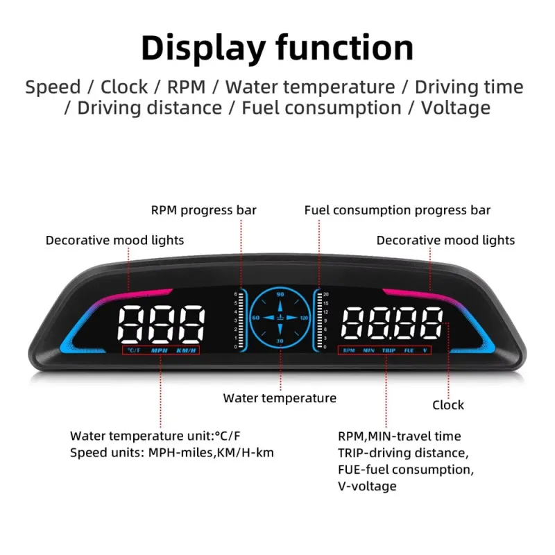 Weiying Car B3 OBD HUD G3 GPS HUD Head Up Display Digital Speedometer Overspeed Alarm Clock RPM Voltage Water Temperature Gauge