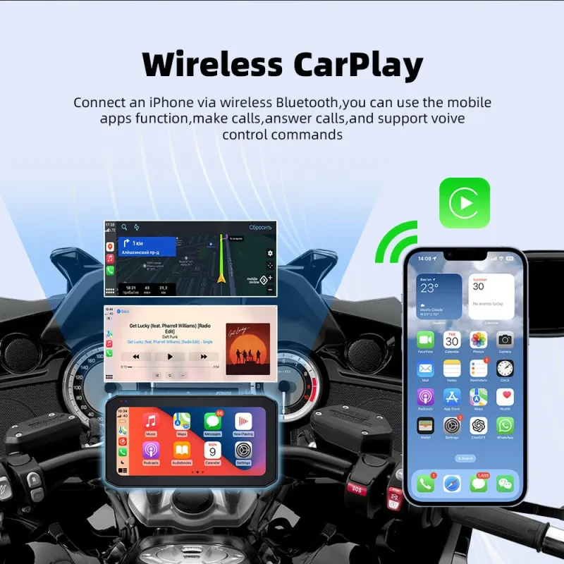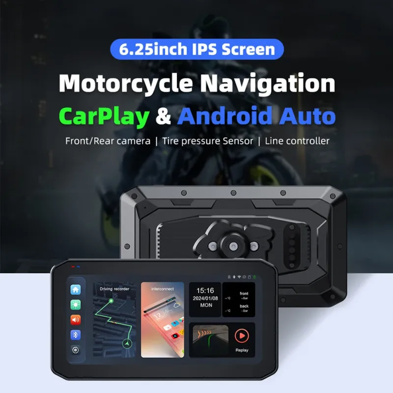 6.25inch Wireless CarPlay Moto Android Auto Portable Digital Dashboard GPS Motorcycle Navigation Display GPS Remote Control TPMS