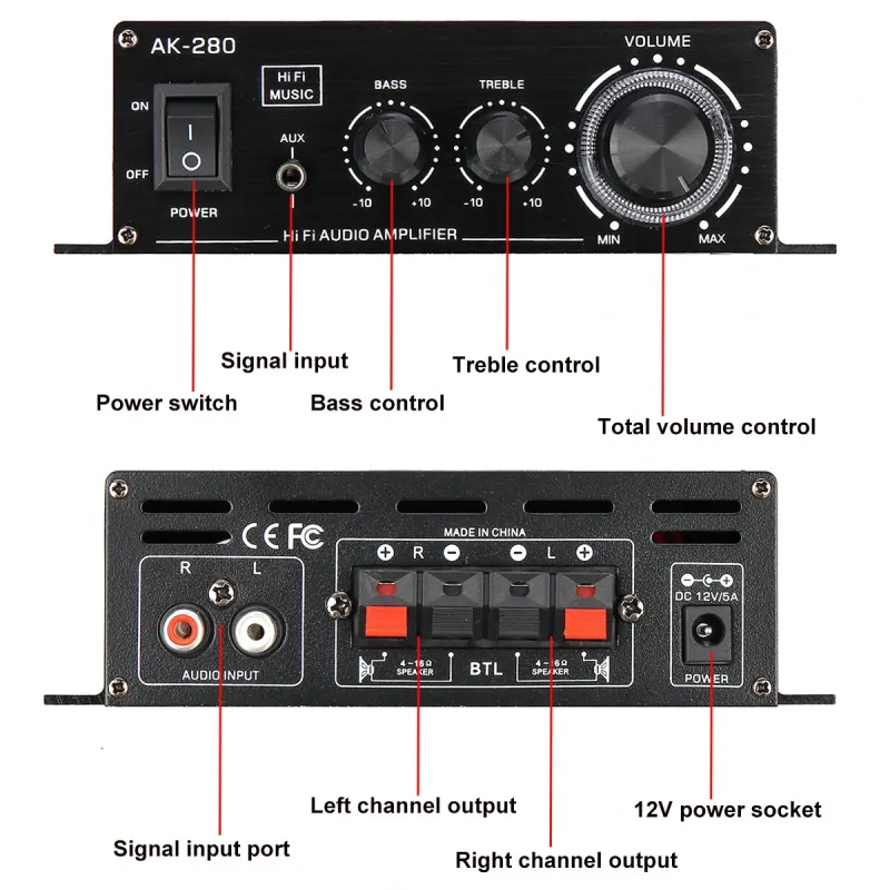 AUTSOME 12V 40Wx2 Power Amplifier 2.0 Channel 90DB Car Small Power Amplifier