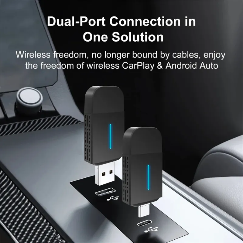 RHYTHM Wireless Carplay Android Auto 2In1 Smart Dongle Adapter 5GWIFI BT5.2 For 99% OEM Car Comes With USB & TYPE-C Interfaces
