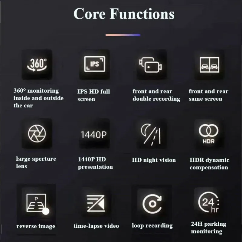 M8 1440P Ultra HD Dash Cam for Recording Front + Interior Car DVR IPS HDR Reversing Image Night Vision 24H Parking Monitoring