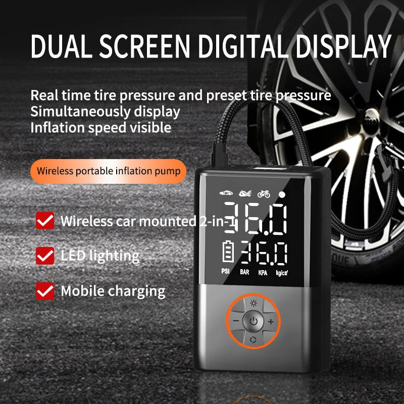 150Psi Cordless Air Pump Portable Car Air Pump Dual Screen Display 4000mAh Car Electric Tire Inflatable Pump for Car Motorcycle Bicycle Ball