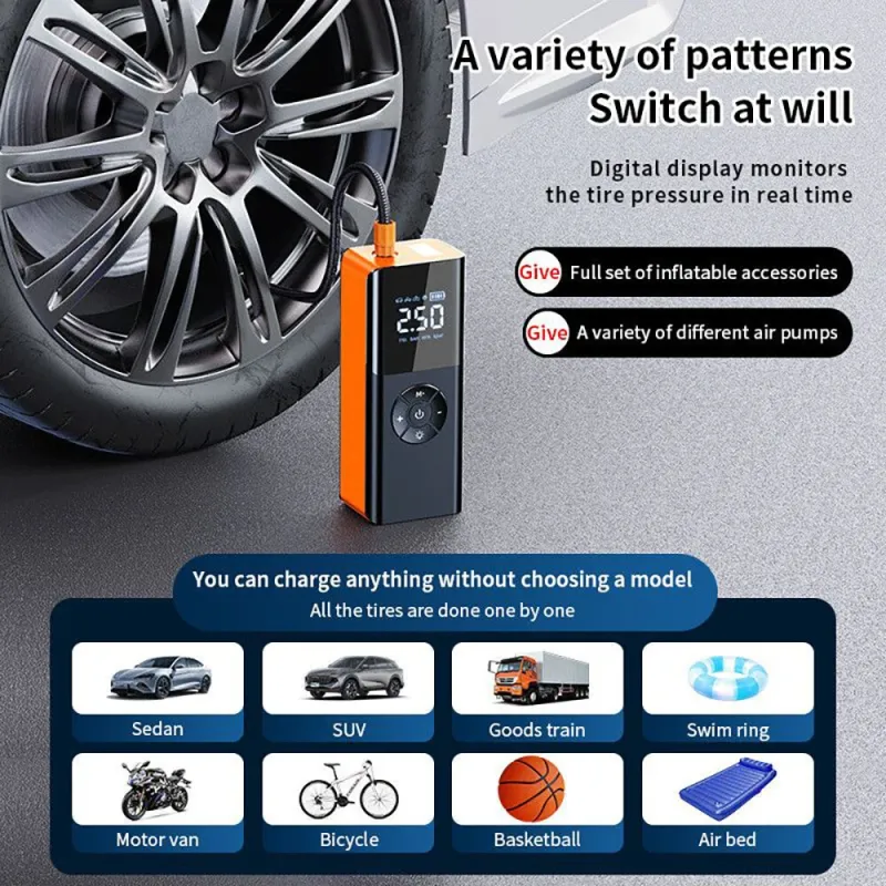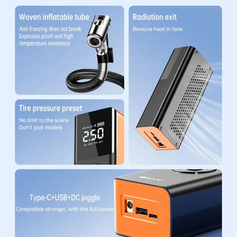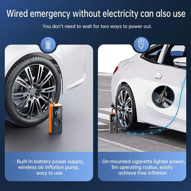 80W Car Tire Inflator Portable Air Compressor 150 PSI Electric Tire Inflator Cordless Tire Pump with Digital LED Display Emergency Light