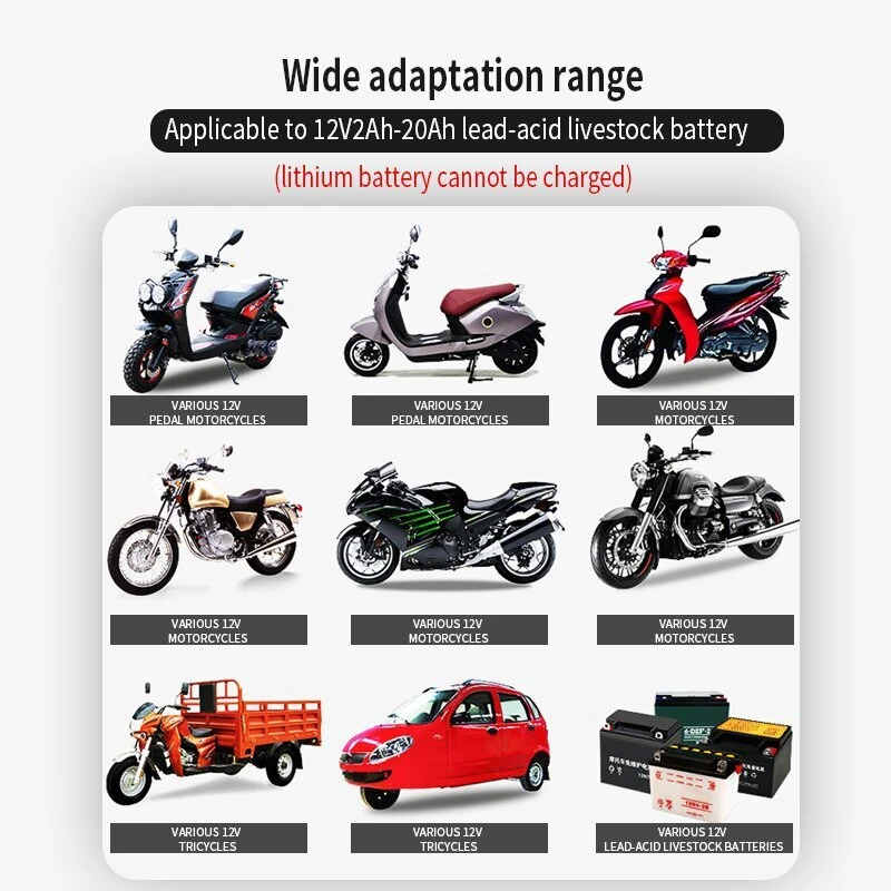 12V 2A Motorcycle Battery Charger Fully Intelligent Led Digital Display Pulse Repair Function