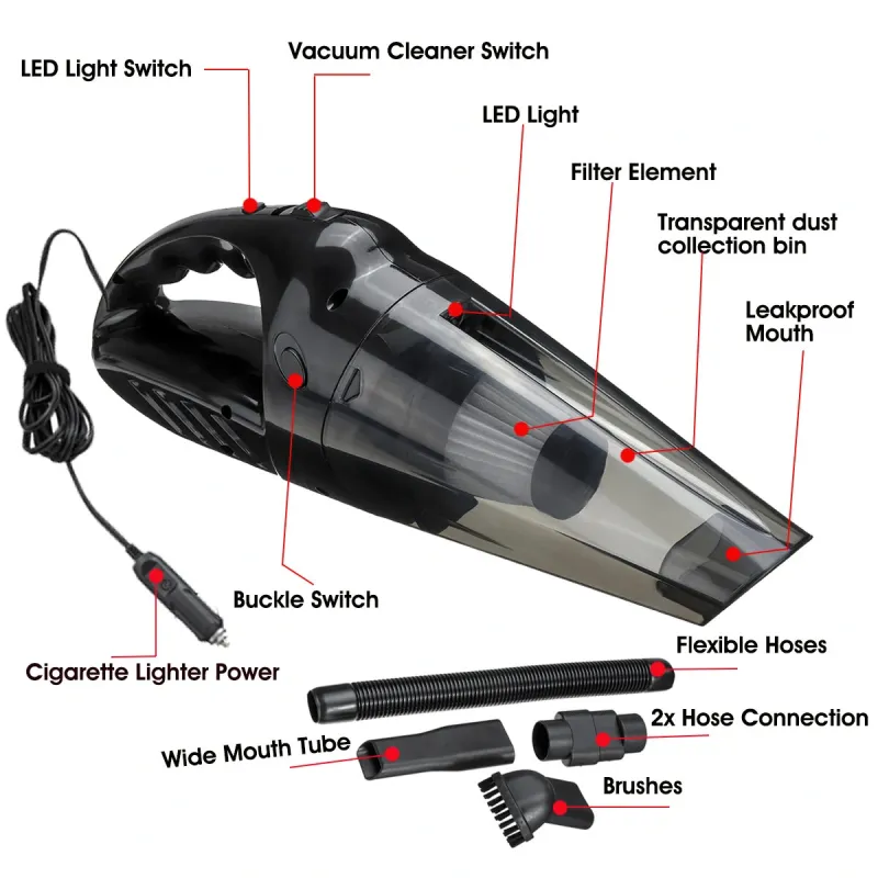 120W Portable Auto Car Handheld Vacuum Cleaner Duster Wet & Dry Dirt Suction with LED Light