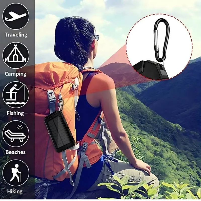 Gaiaray 30000mAh Solar Power Bank Dual USB Travel Large Capacity LED Lighting Outdoor Waterproof Power Bank Camping Spare Power