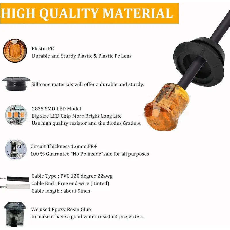 20PCS 12V LED Side Marker Light Indicator Lamp for Car Truck Van Trailer Boats Side Indicators Signal Lights