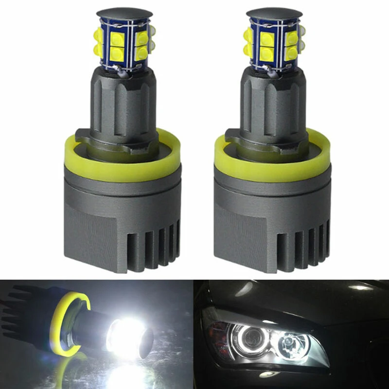 2Pcs Car LED Angel Eyes Lights H8 Headlights 1600LM 6500K With Connector For BMW