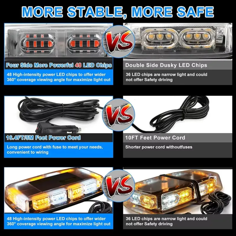 48 LED Magnetic Emergency Strobe Lights Roof Top Car Safety Warning Flashing Light 12V/24V Amber Stroboscopes Trucks Police Lamp