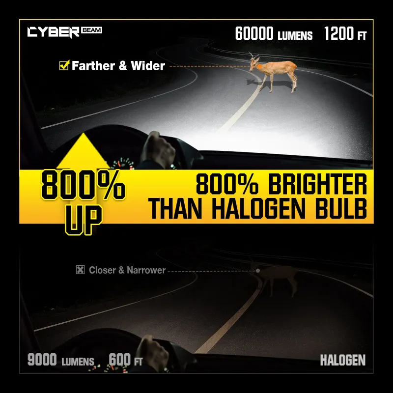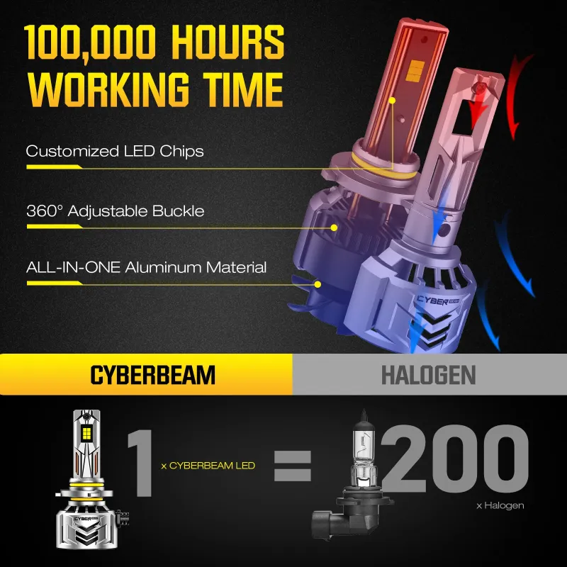 CYBERBEAM A900-C27 H4 / H7 / H11 / H13 / 9012 / 9005 240W 60000LM Pair Car LED Front Headlights LED Bulbs 6500K Bright White Light IP68 Waterproof