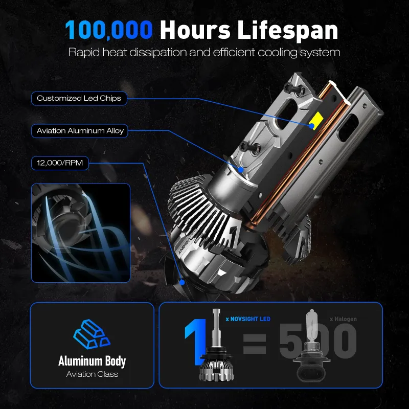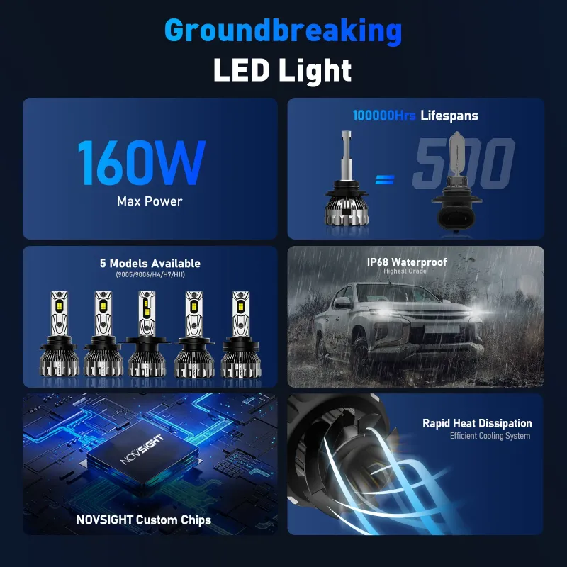 NOVSIGHT A500-T2 160W High Power 2PCS 33,000LM DC9-32V Car LED Headlights 6500K Cool White IP68 Waterproof