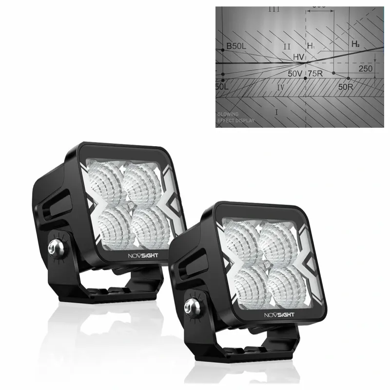 NOVSIGHT 2PCS 3 Inch Flood Beam Light LED Pod Light Square Cube Lamp IP68 Waterproof for Truck ATV UTV SUV Boat Car