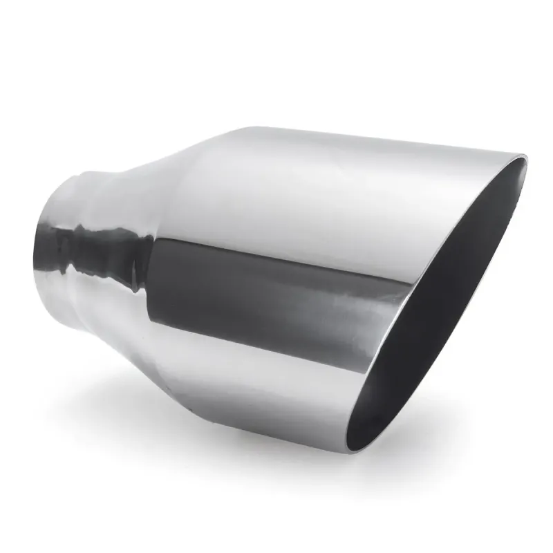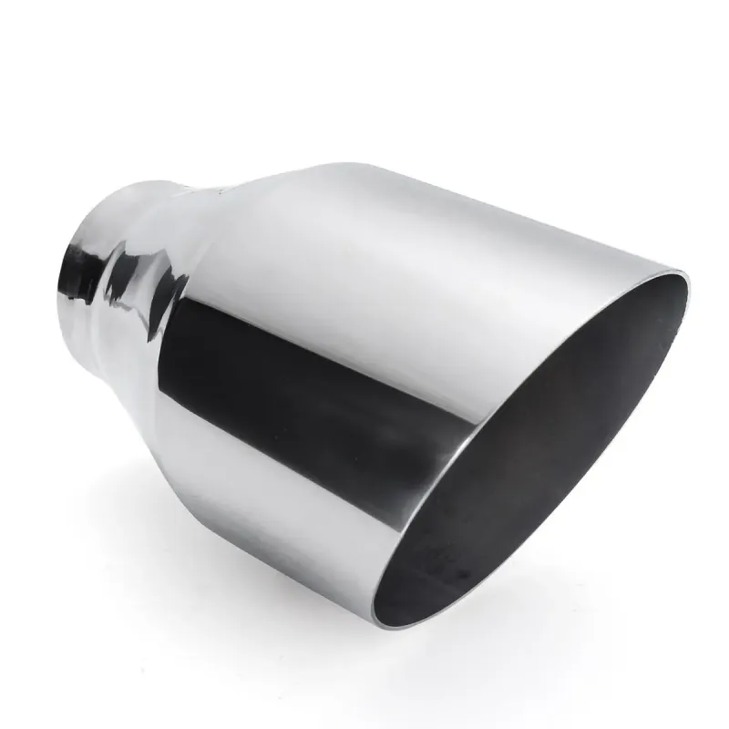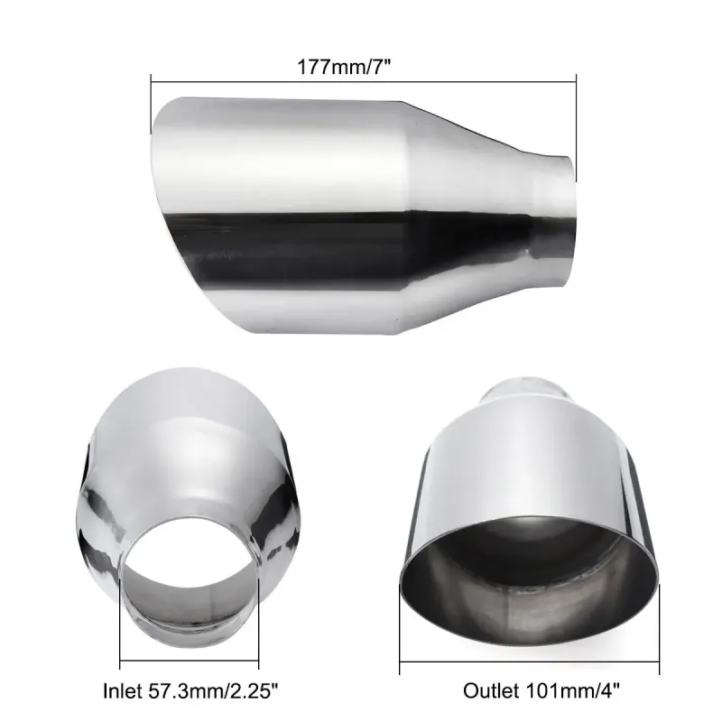 Universal Stainless Steel Exhaust Muffler Round Slant 2.25 Inch Inelt 4 Inch Outlet