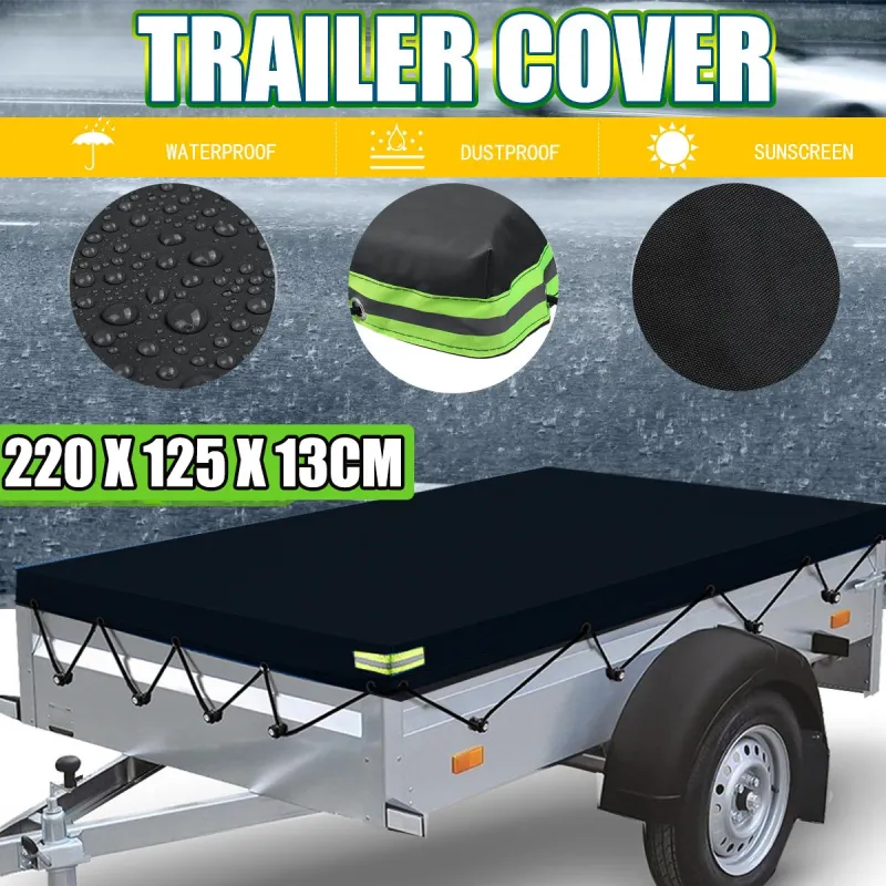 214x122cm Foldable Trailer Car Cover Waterproof Windproof Dust Protector With Rubber Belt