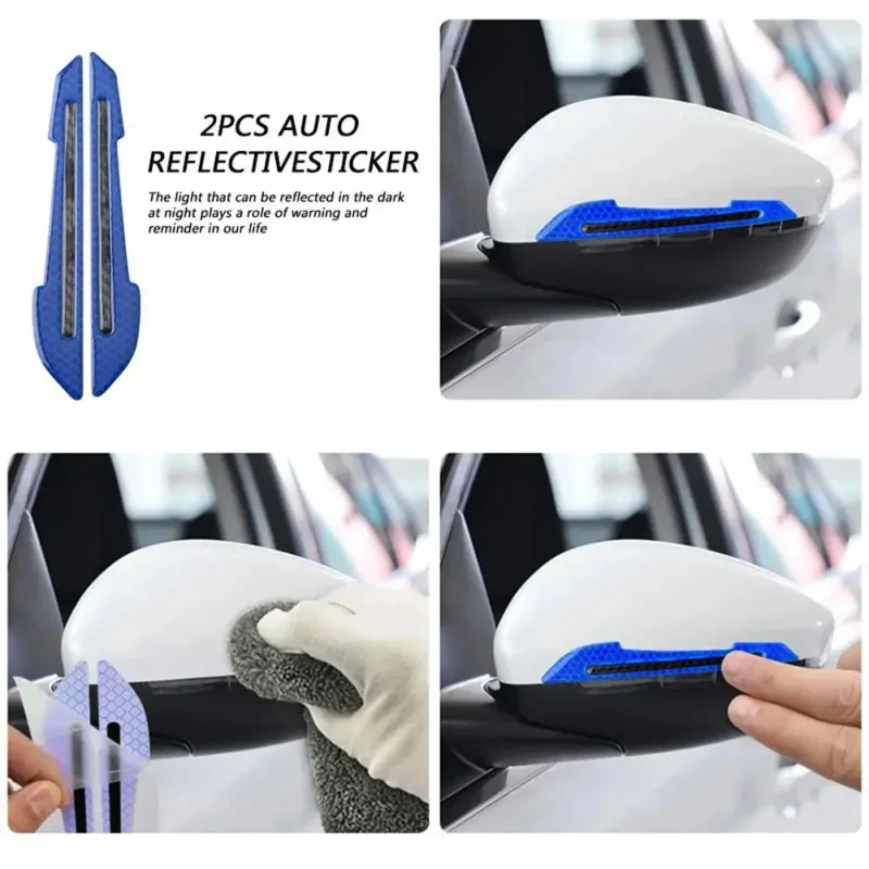 2pcs 3D Car Bumper Reflective Strips Car Rearview Mirror Stickers Safety Reflective Stickers Reflective Warning Stickers