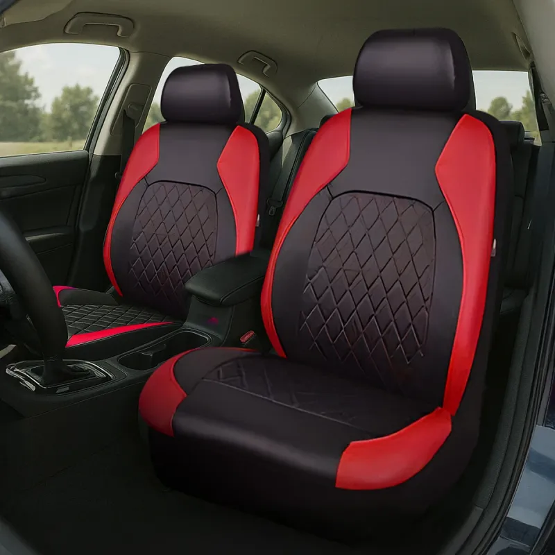 4Pcs/Set Luxury PU Leather Car Seat Covers Full Set Non-Slip Universal Fit for Cars Trucks SUVs Airbag Compatible Black Blue Red Seat Protectors