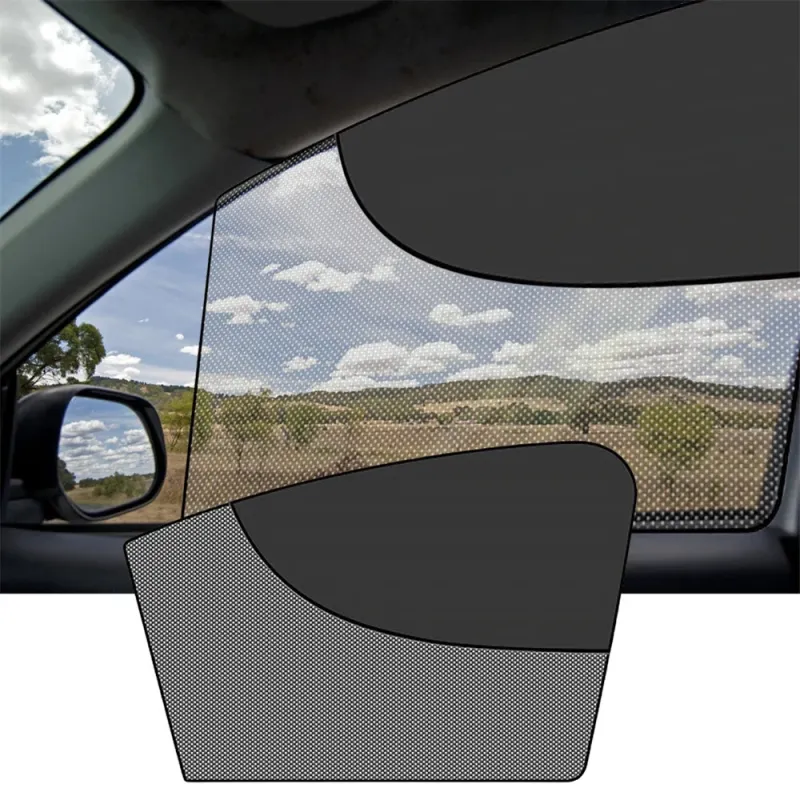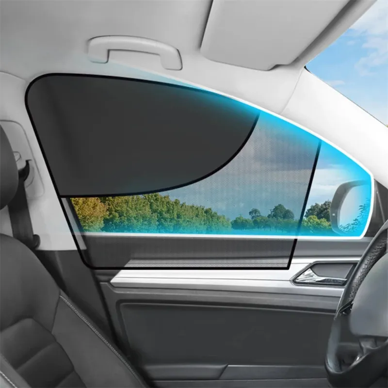 Double Layer Car Window Sunshade UV Protection Mesh Magnetic Install Black Side Glass Cover Heat Block Vision Enhancement Universal