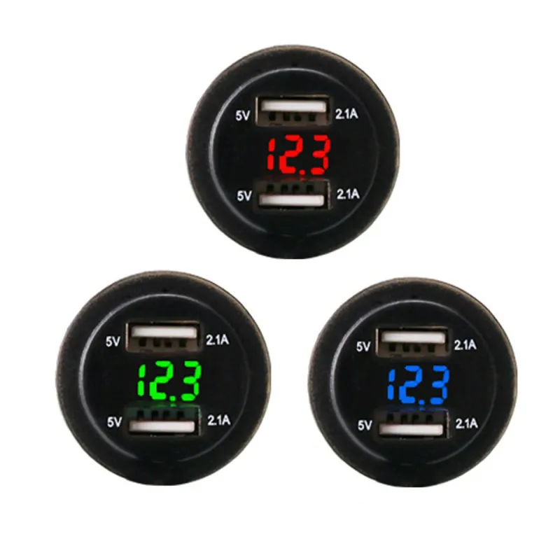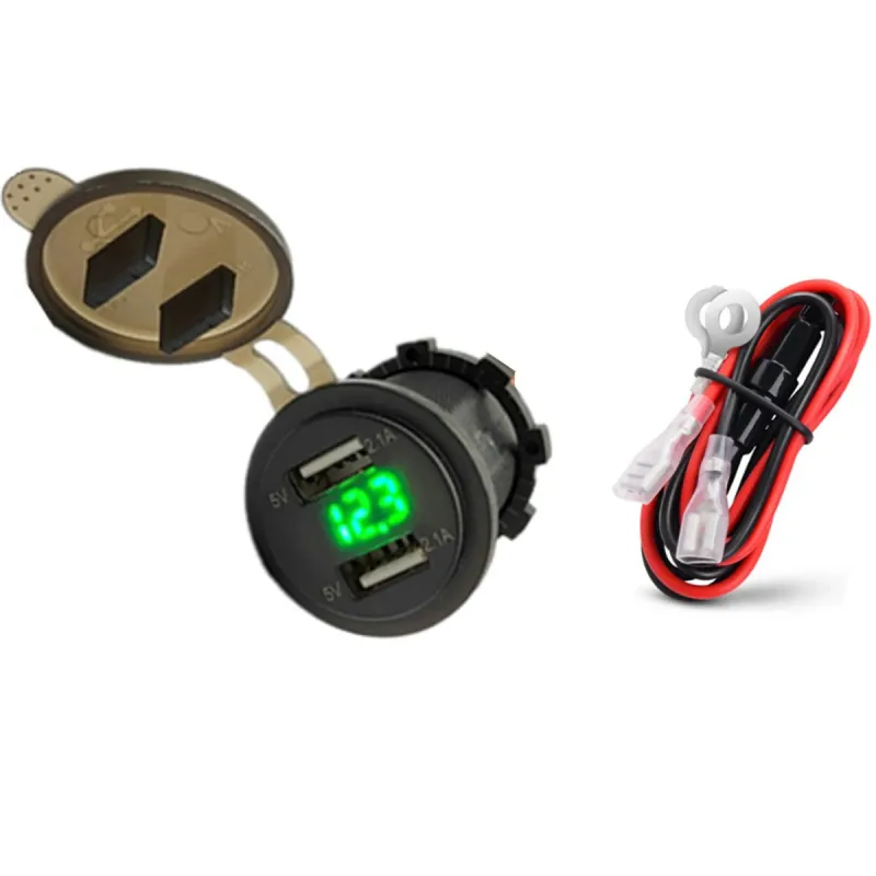 4.2A Waterproof Car 2 Port Dual USB Charger Socket Power Outlet with LED Voltmeter for 12-24V Car Boat Marine ATV Motorcycle
