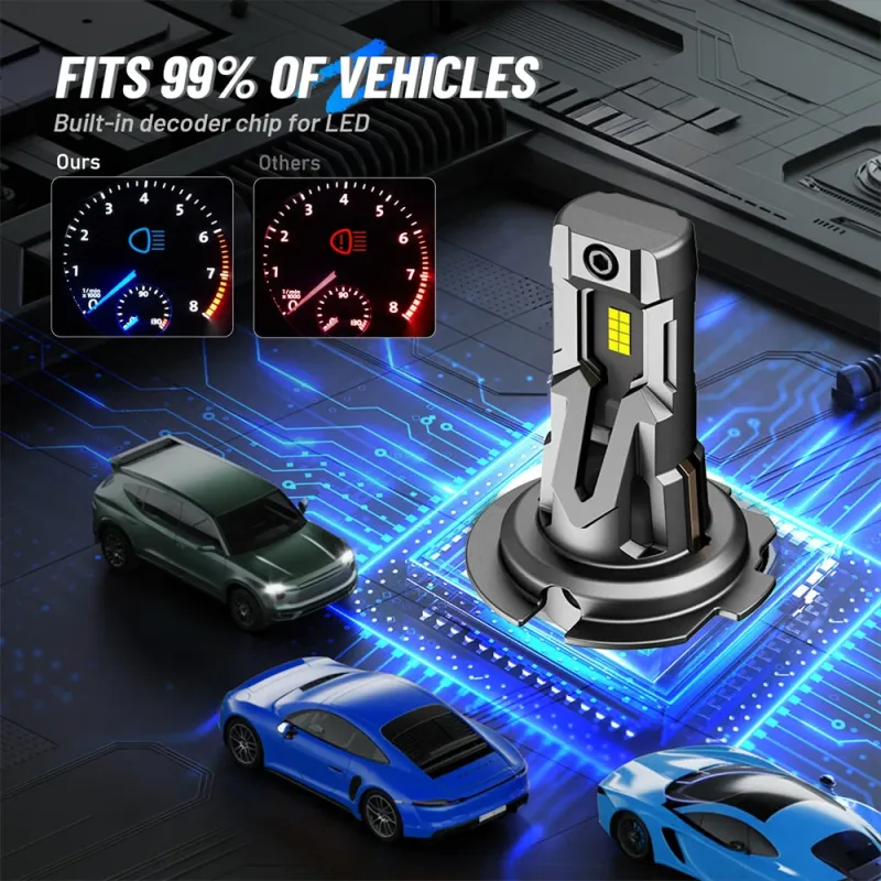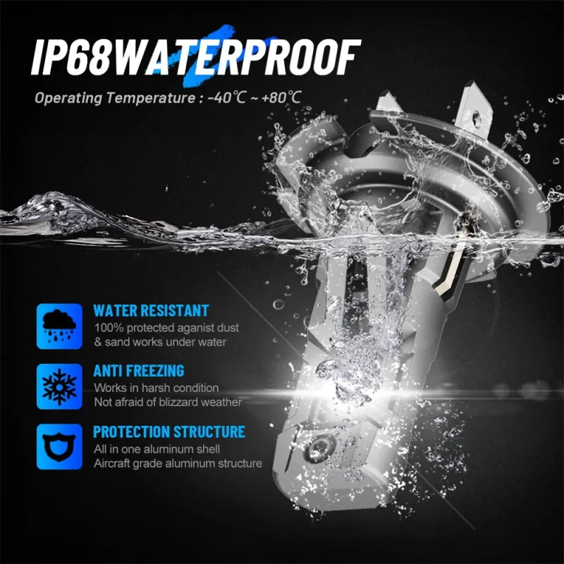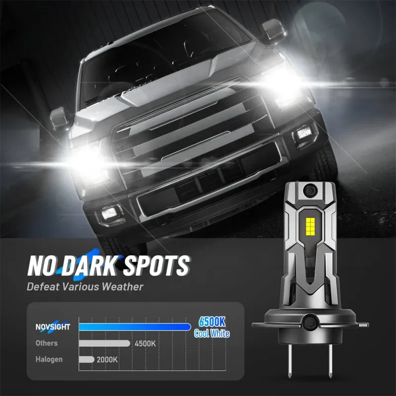 NovSight A500-T14 H7 LED Headlight Bulbs 12000LM 6500K White Light 40W Waterproof IP68 Long-Range 99 Percent Vehicle Compatibility Plug-and-Play Mini Size Bright Car Lights