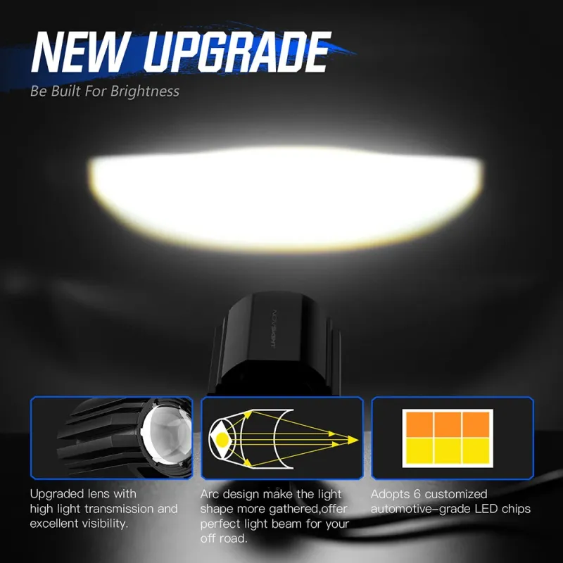 NOVSIGHT A500-WL11-1 2-inch 1500lm Motorcycle Headlight Dual Beam Modes Motorcycle Spotlight IP68 Waterproof
