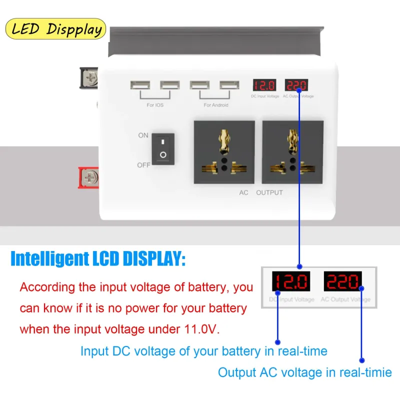 12V to 220V Inverter 4000W Car Power Converter Solar LCD Dual Display 4 USB 4.2A Fast Charge with Intelligent LCD Voltage Screen display