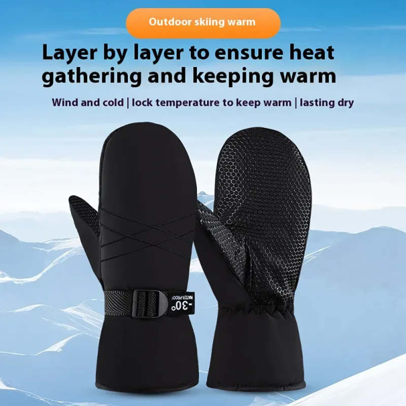 Pair Motorcycle Winter Gloves Outdoor Ski Gloves Warm Non-Slip Extended Wrist Windproof Gloves Electric Motorbike Thickening Gloves