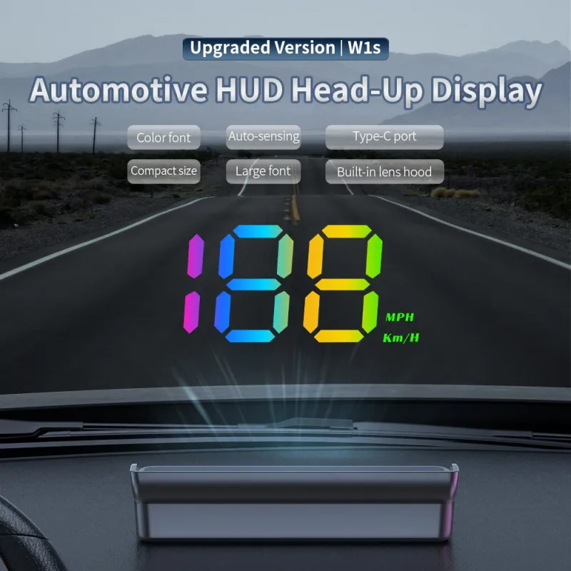 Weiying W1S Automotive HUD Display 10Hz Dual-Mode GPS Speed Monitor Type-C Large Font Plug And Play
