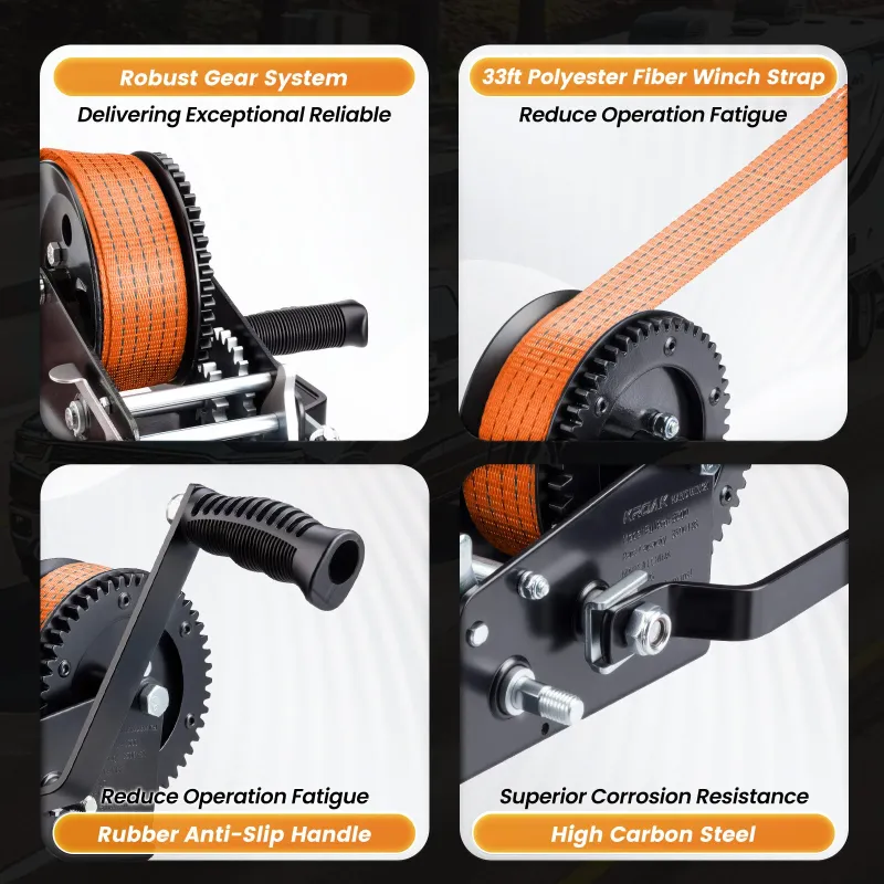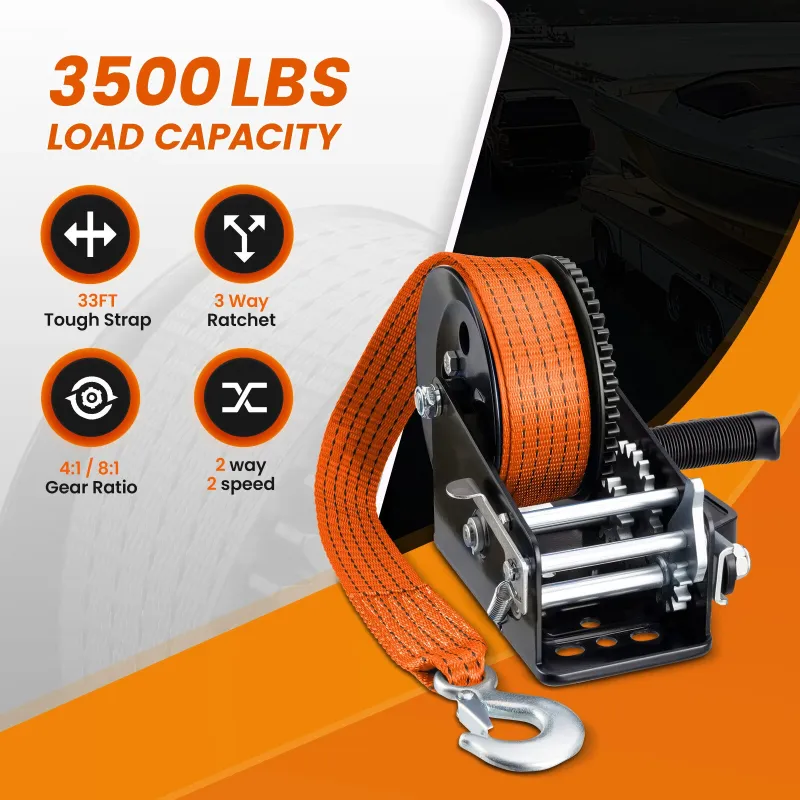 Heavy Duty 3500 lbs Boat Trailer Winch with 33 ft Strap Manual Winch with Grip Handle Dual Directional Ratchet - Ideal for Boats Jet Skis Trailers Marine