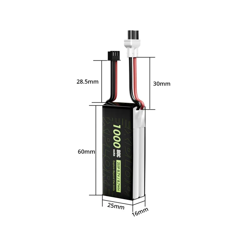2PCS Flywoo Explorer 7.6V 1000mAh 80C 2S1P LiPo Battery XT30 Plug for Micro Quad Flywoo Flytimes 85 FlyLens 85 HD Flylens75 HD O4/O4 Pro FPV Racing Drone