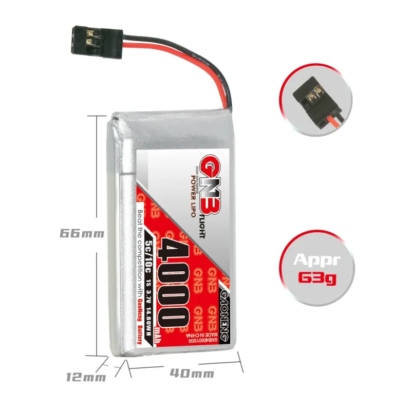 GAONENG 3.7V 4000mAh 5C 1S LiPo Battery JR Plug for Sanwa M17 Transmitter Receiver