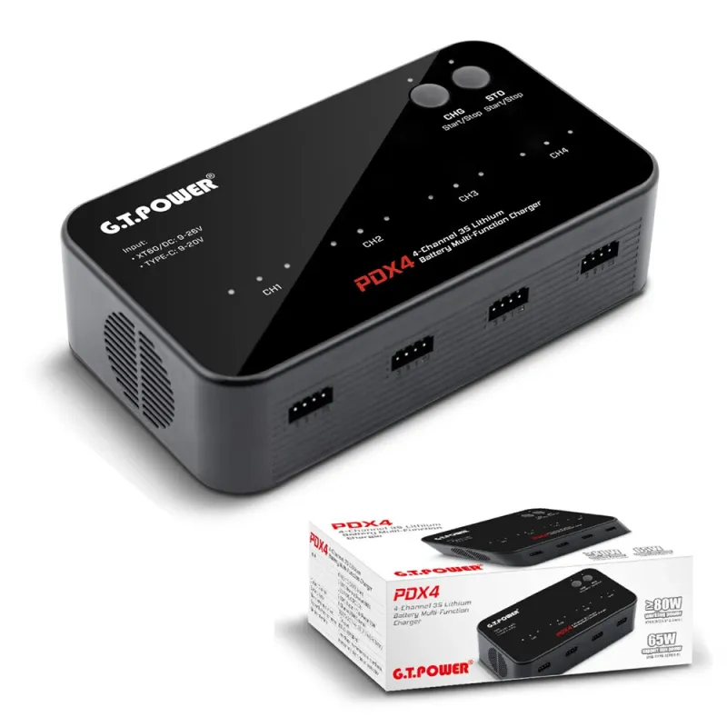 GT POWER PDX4 AC 80W DC 64W 4 Channel Multi-Function Lithium Battery Charger for 1S 2S 3S LiPo Battery Charge
