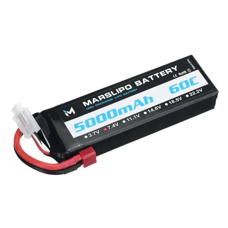 MARSLIPO 7.4V 5000mAh 60C 2S Lipo Battery T Plug for RC Car