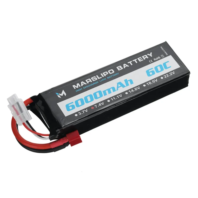 MARSLIPO 7.4V 6000mAh 60C 2S Lipo Battery T Plug with XT60 Adapter for RC Model