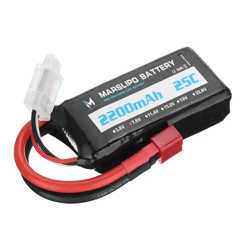 MARSLIPO 7.6V 2200mAh 25C 2S Lipo Battery T Plug with XT60 Adapter for RC Model Toys