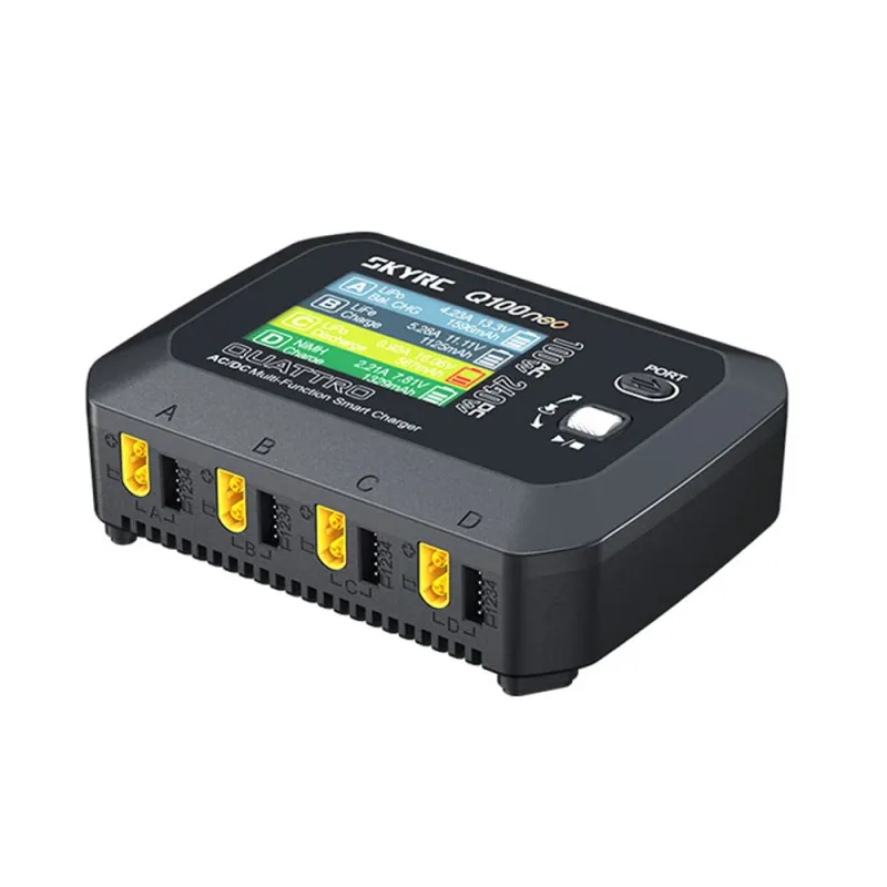 SKYRC Q100neo Quad Output AC/DC AC 100W DC 240W 2.8 inch Screen Multi-Function Smart Balance Charger for 1-4S LiPo/LiHV/LiFe/LiIon 1-8S NiMH/NiCd 3S/6S Pb Battery Charge
