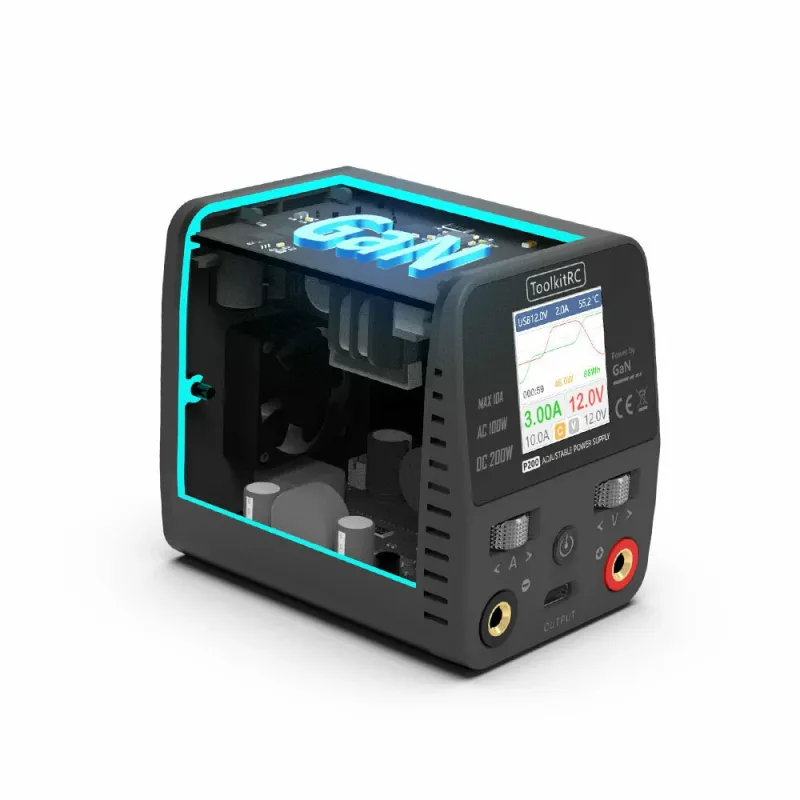 ToolkitRC P200 Mini 30V AC100W DC200W 10A GaN Adjustable Mini Desktop Power Supply USB Output