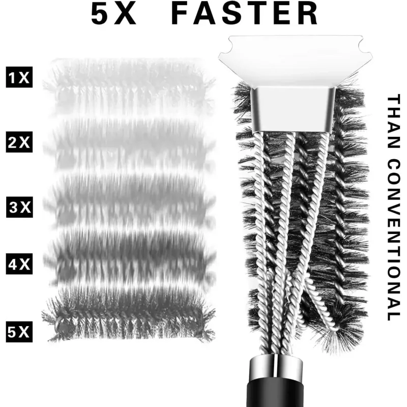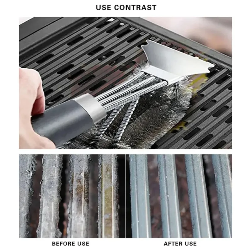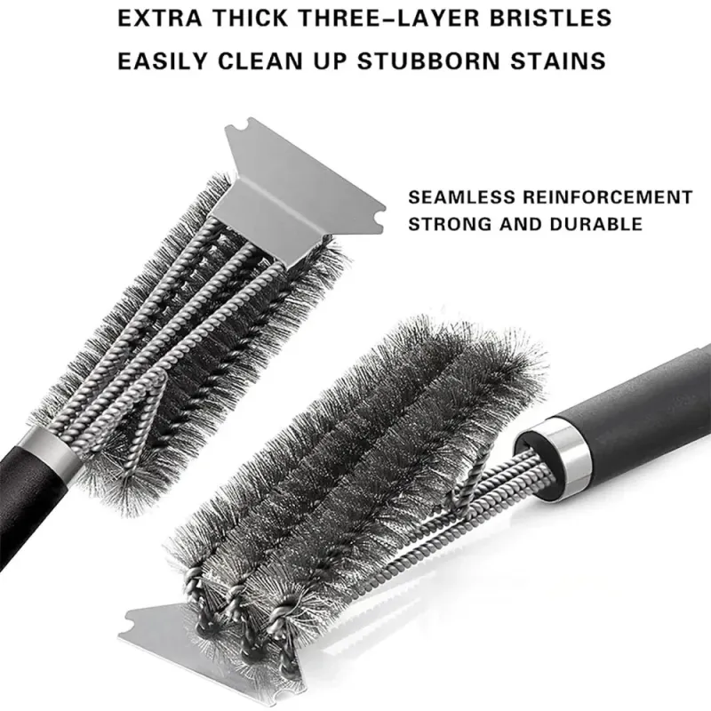 Long Handle BBQ Grill Cleaning Brush with Stainless Steel Scraper Bristles Cleaner Heavy Duty BBQ Tool Easy Stain Removal Grill Wire Brush Barbecue Accessories