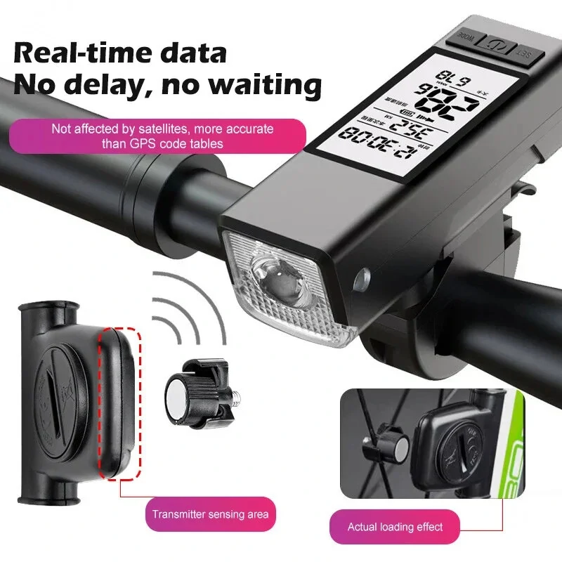 3 in 1 450Lm Brightness Wireless Bike Headlight 2000mAh Battery Type-3 Light Modes Smart Speedometer with 120db Horn for Night Cycling