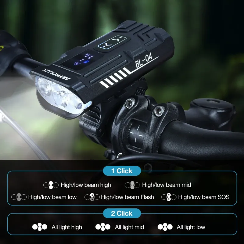 Astrolux BL02 BL04 LE1200Lm 5Modes Dual Distance Beam Bike Light USB Rechargeable Support Wire Remote Switch Flashlight 5000mAh Power Bank Waterproof Front Light for Electric Bike Scooter