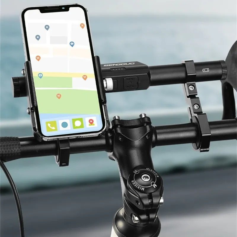 BENGGUO BG-0797 400LM Bicycle Headlight Handlebar Extension Bracket with Phone Holder Type-Charging Waterproof Bike Mount(No Batteries)