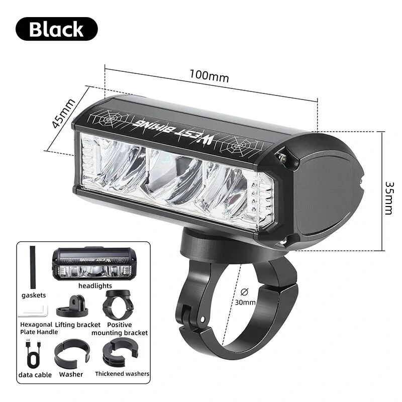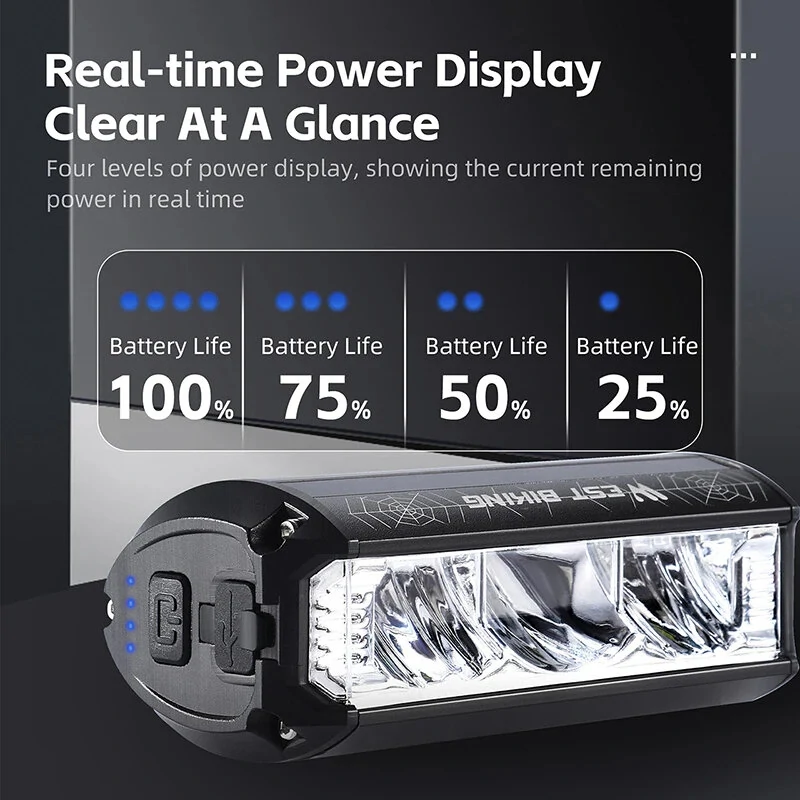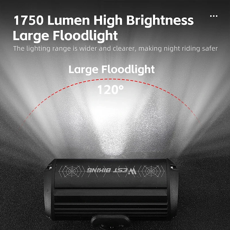 WESBIKING 1750Lm Super Brightness Bike Headlights 4000mAh Battery Waterproof 4 Light Modes Type-Rechargeable Aluminum Alloy Mini Front Light for Electric Bike Scooter MTB Bicycle